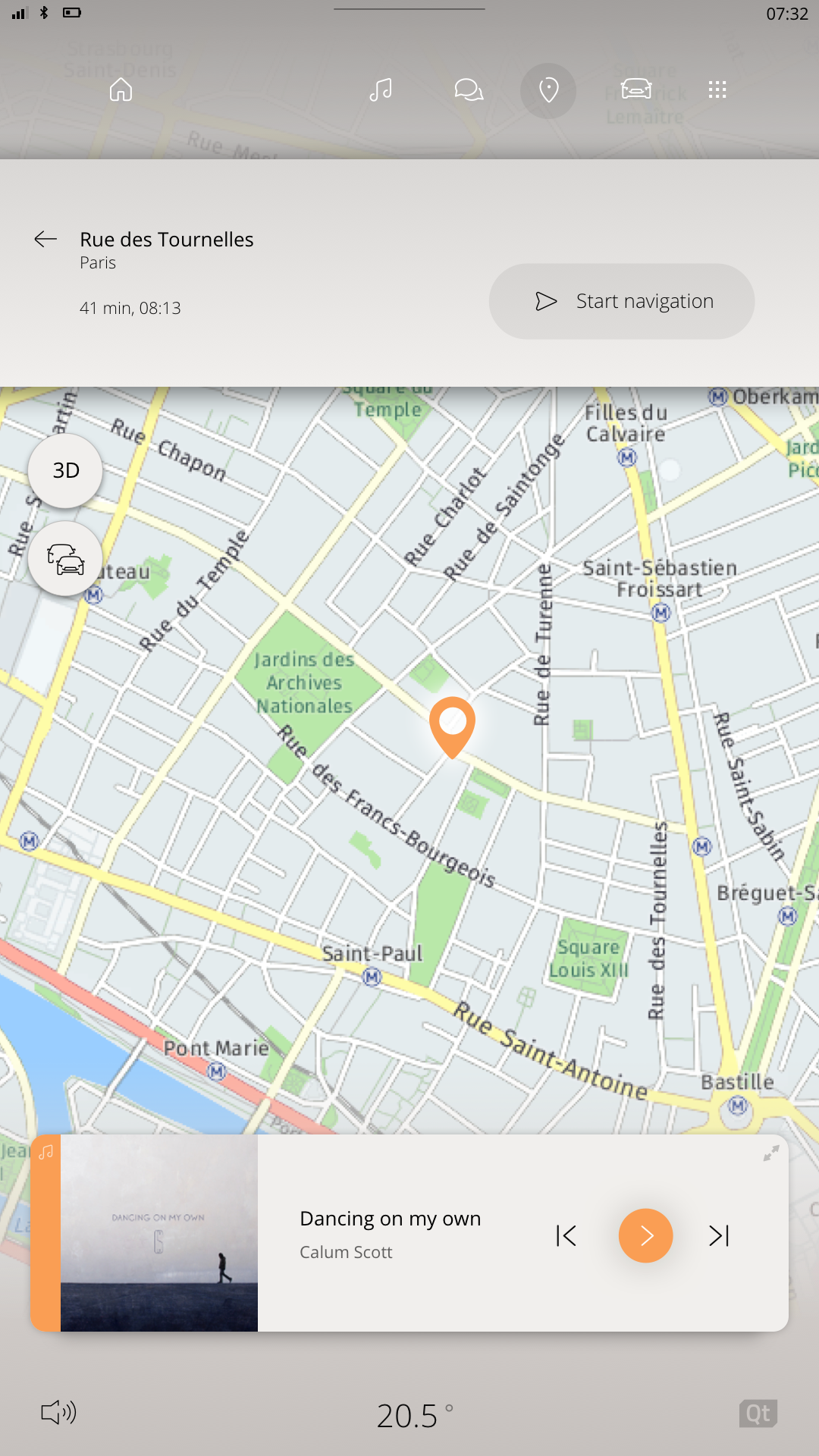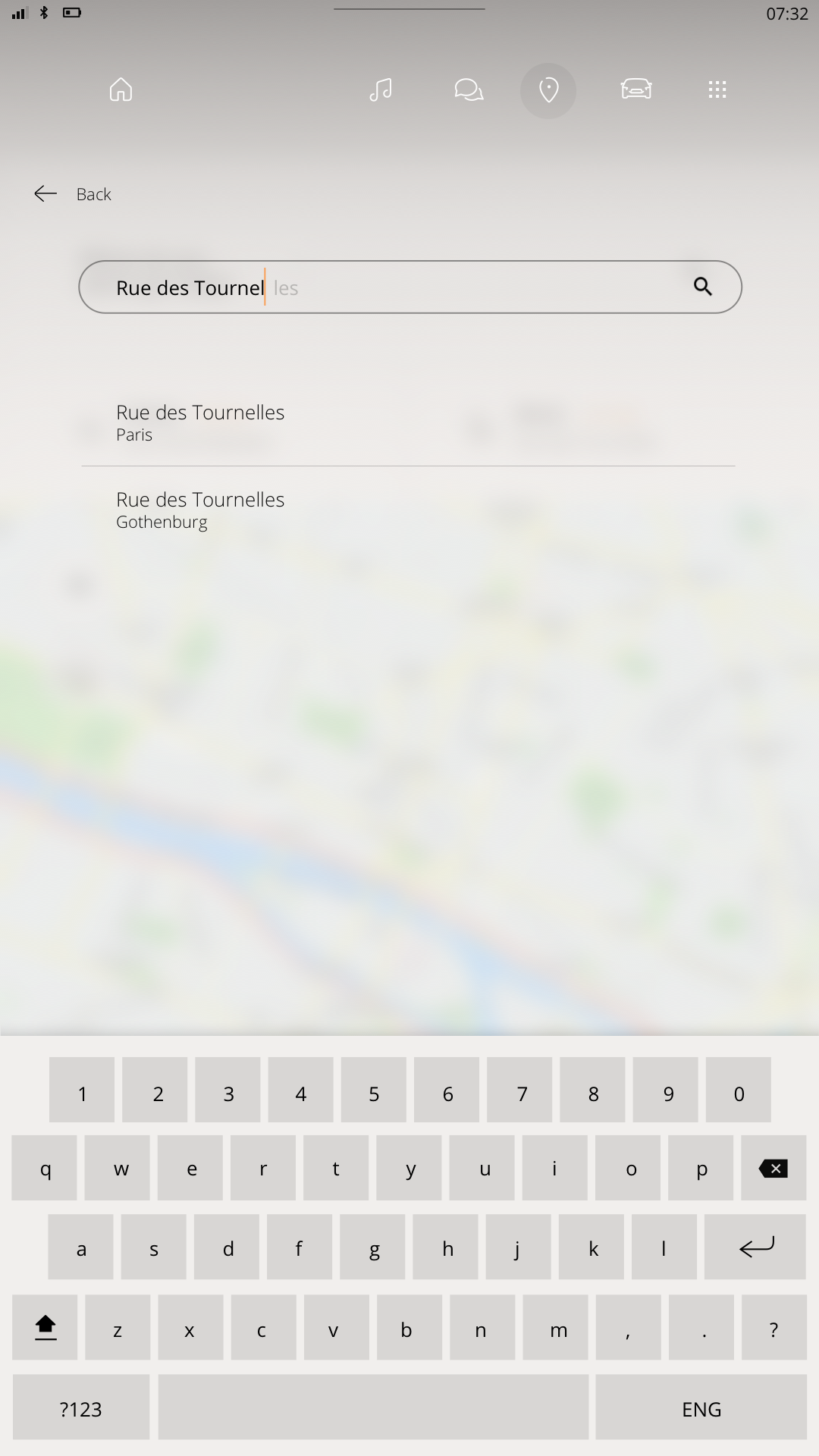 3D-buttons does not look correct. Is sometimes clipped. And sometimes the text goes outside of the background.cannot reproduceWhere is the “show my position” button? (Please clarify this withjohan.magnusson)https://bugreports.qt.io/browse/QTAUTO-960Search page does not necessary need to use blur. Johan can redesign it.(decided to keep it for now)How do we hide the bottom widget in the search view? (Please clarify this with Johan)https://bugreports.qt.io/browse/QTAUTO-887Add cancel/back button in search viewhttps://bugreports.qt.io/browse/QTAUTO-888When cancelling a search or selection of destination I would like to be taken back to my old position.https://bugreports.qt.io/browse/QTAUTO-915Map looks strange when changing widget size with 3D mode.https://bugreports.qt.io/browse/QTAUTO-925
