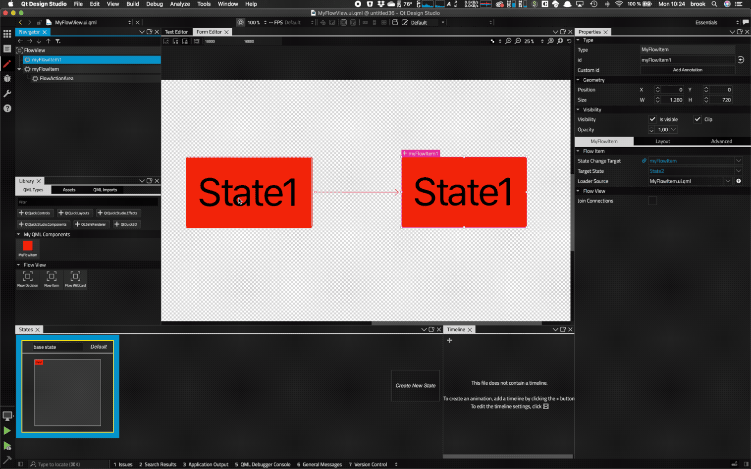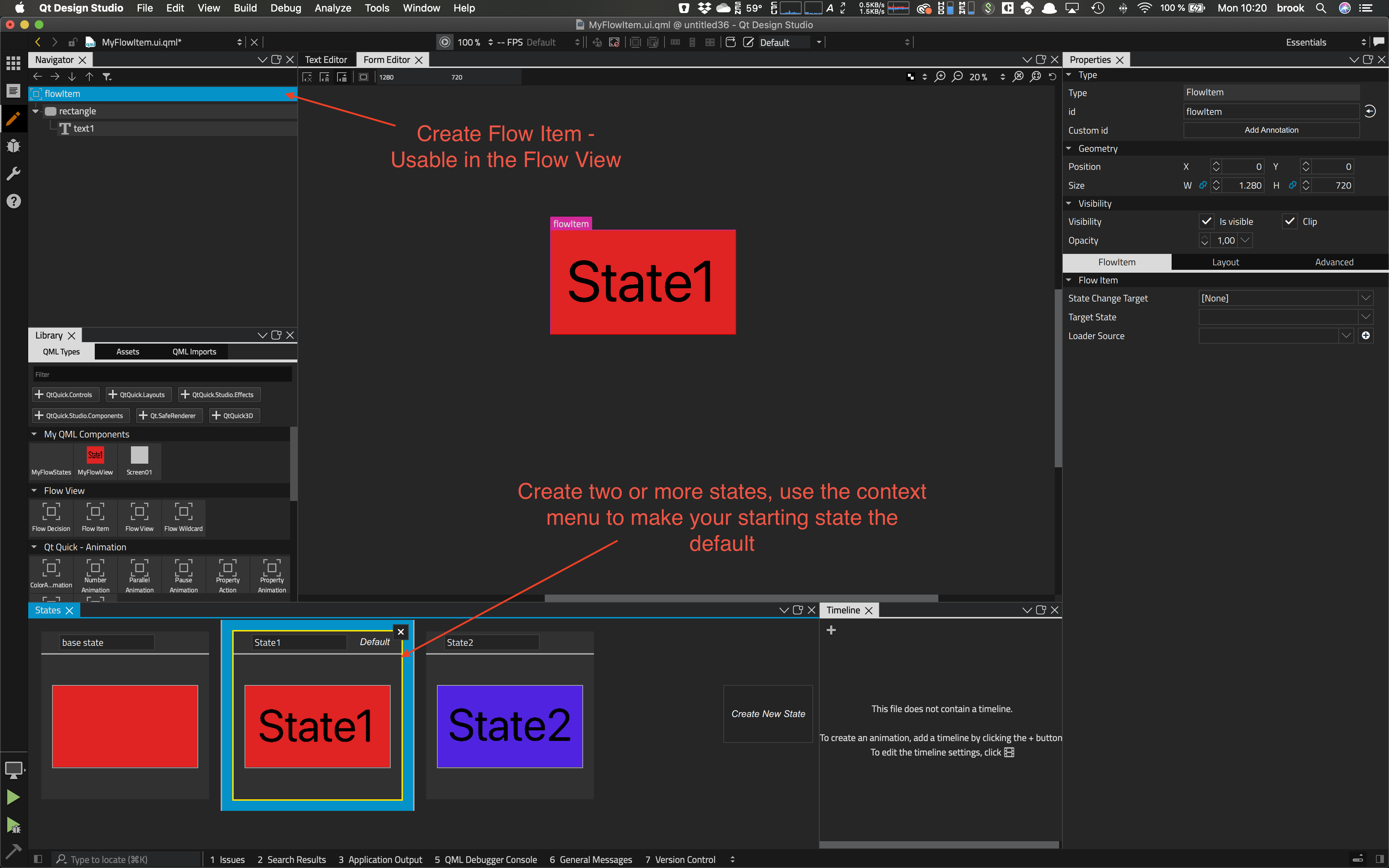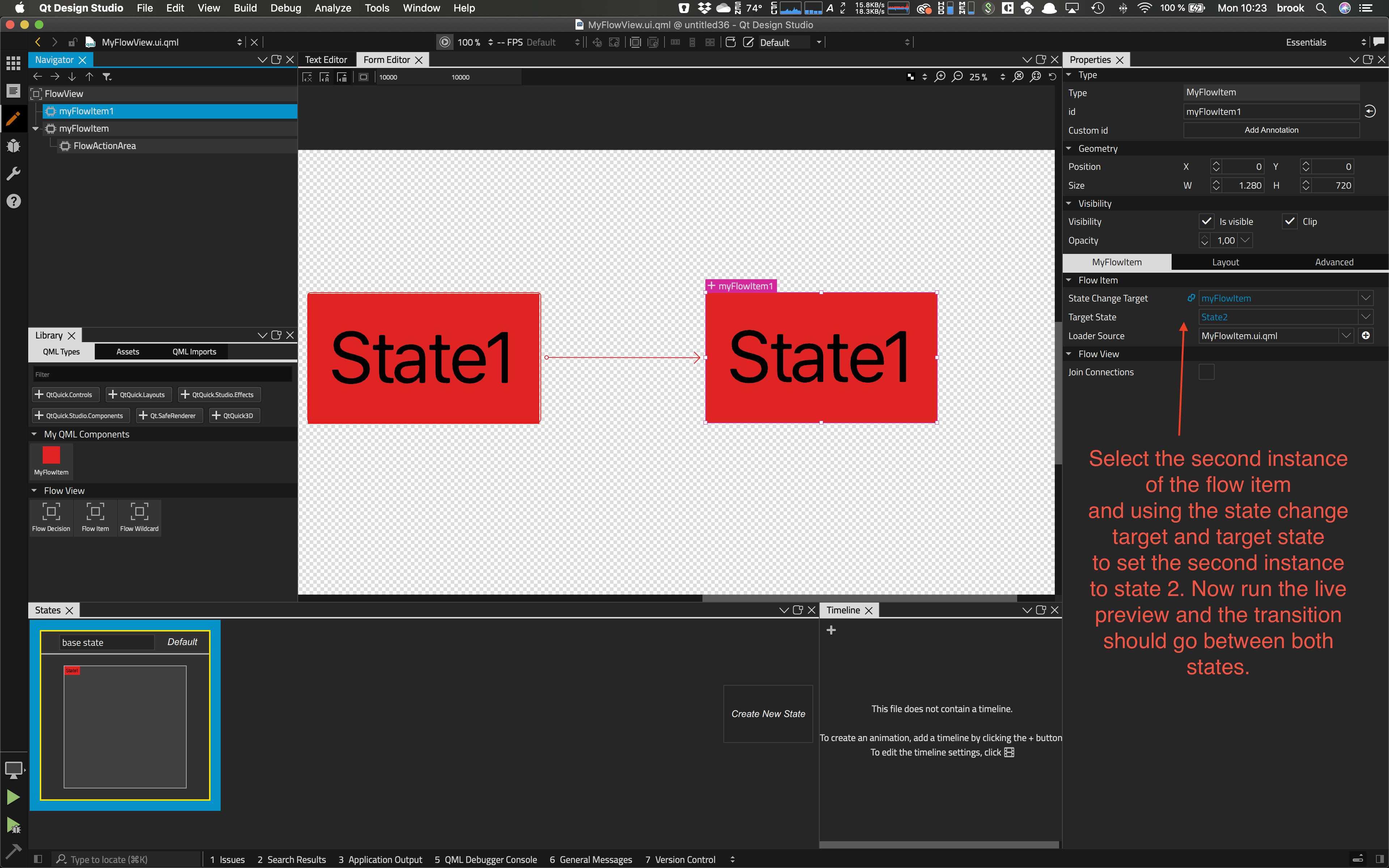 Create a basic example using state to state transitions using the flow editor.