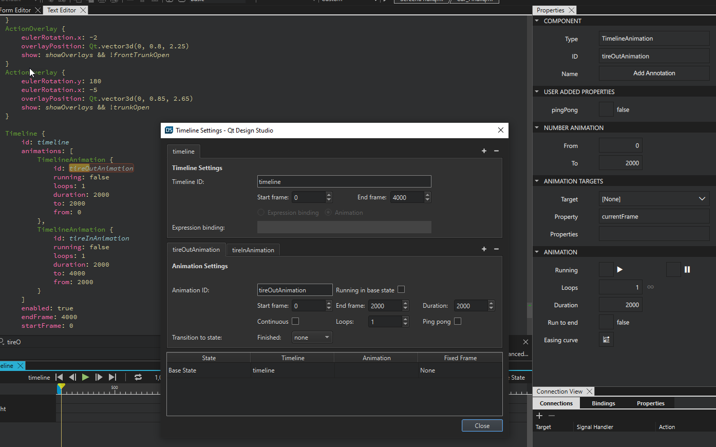 You should see all properties in the Timeline Settings dialog and you should be able to create, for example, bindings from there.