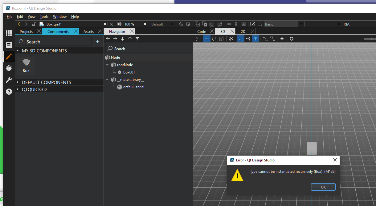 • Components view show only Default Components and QtQuick3D sections as expected