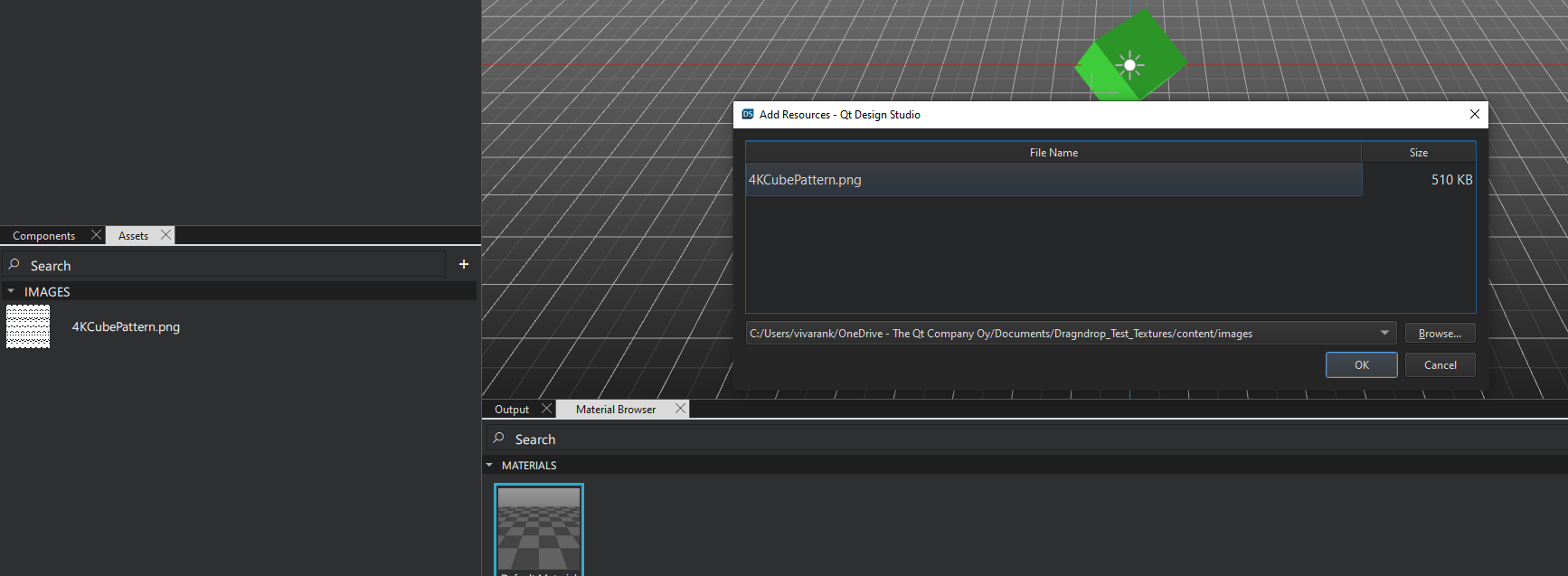 Add Resources -prompt will appear, even though the texture is already in the Assets -view.