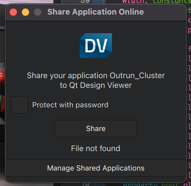 After clicking on 'Share' the window will go black/blank for a moment and then return a message saying 'File Not Found'.