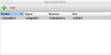 If I create some widgets in Designer, and I open the Signal/Slot Editor, I am able to use + to create new rows. However, with a double-click on <sender>, a combo box with "<object>" object appears, but no items drop down to choose. Clicking on "<object>" only causes the space to revert to <sender>. I also notice that the combo box is smaller than usual – smaller than in Qt 4.8.x. And I checked in Designer for Qt 4.8.x, and this functionality did work correctly.