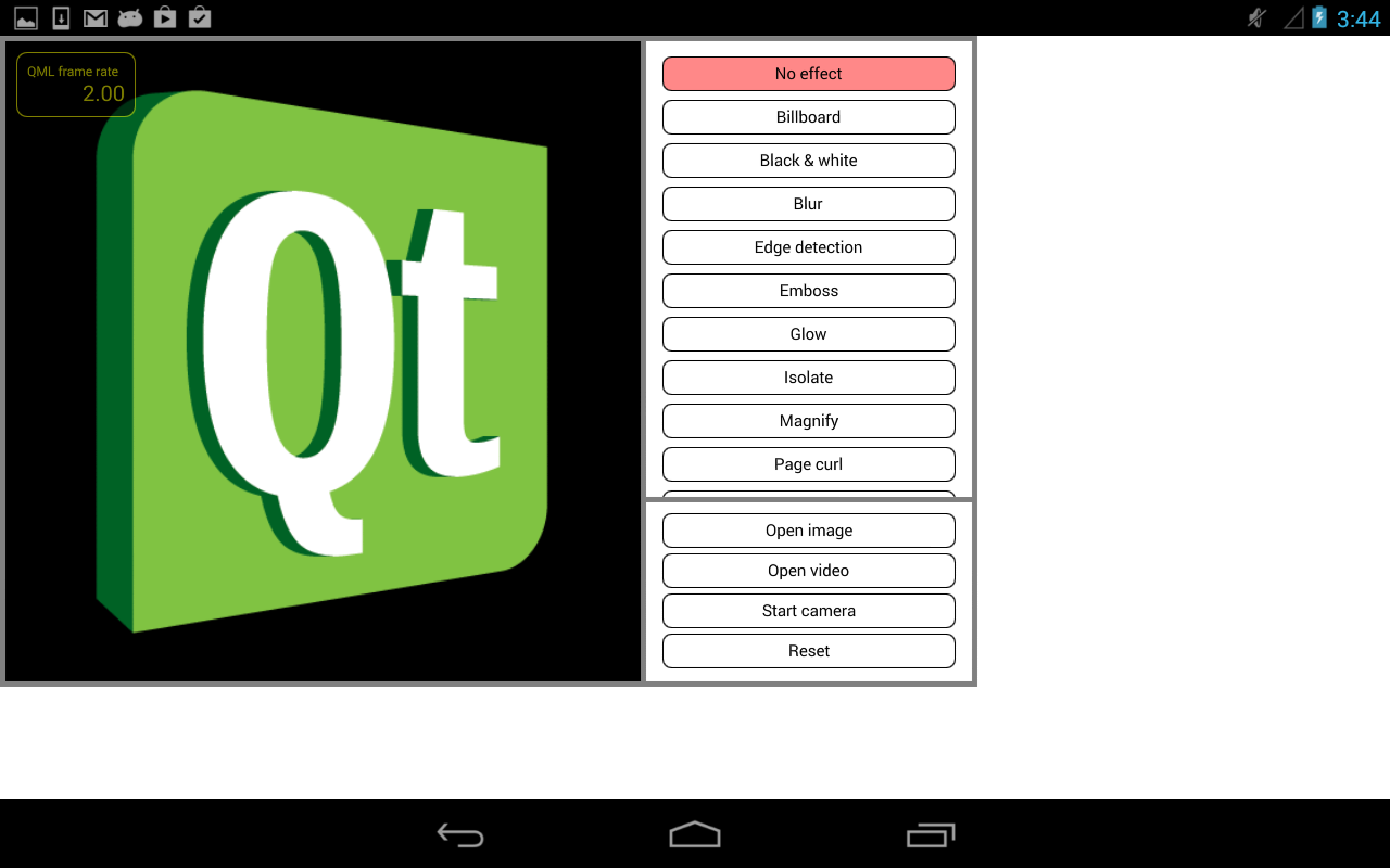 The example view appear trimmed in portrait mode and Open Video doesn't let you select existing videos in the videos folder of the device.