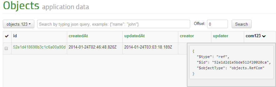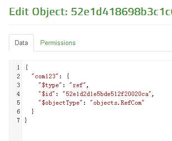 { "$type": "ref", "$id": "xxxxx(object id)", "$objectType": "objects.RefCom" }