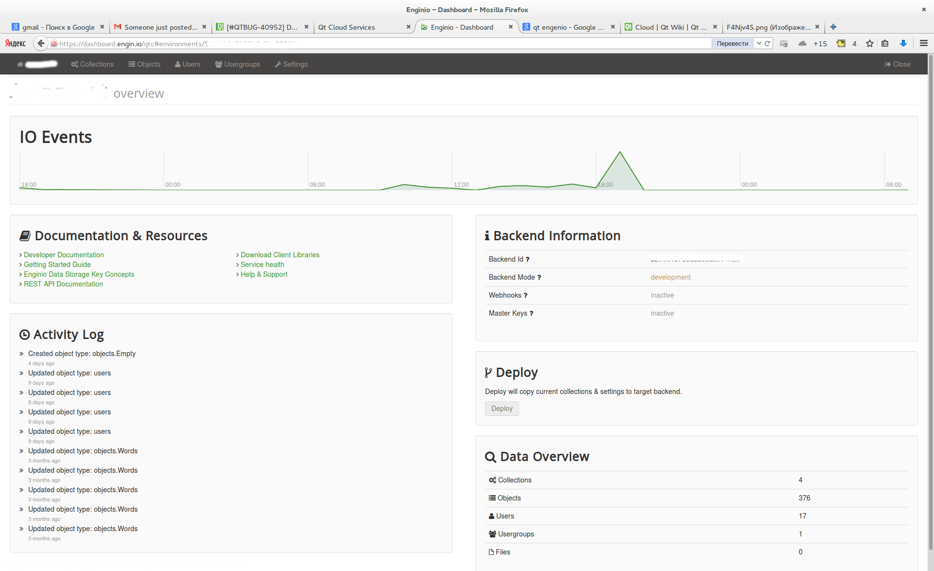 Deploy button is disabled in Enginio dashboard even when backend has multiple custom collections.