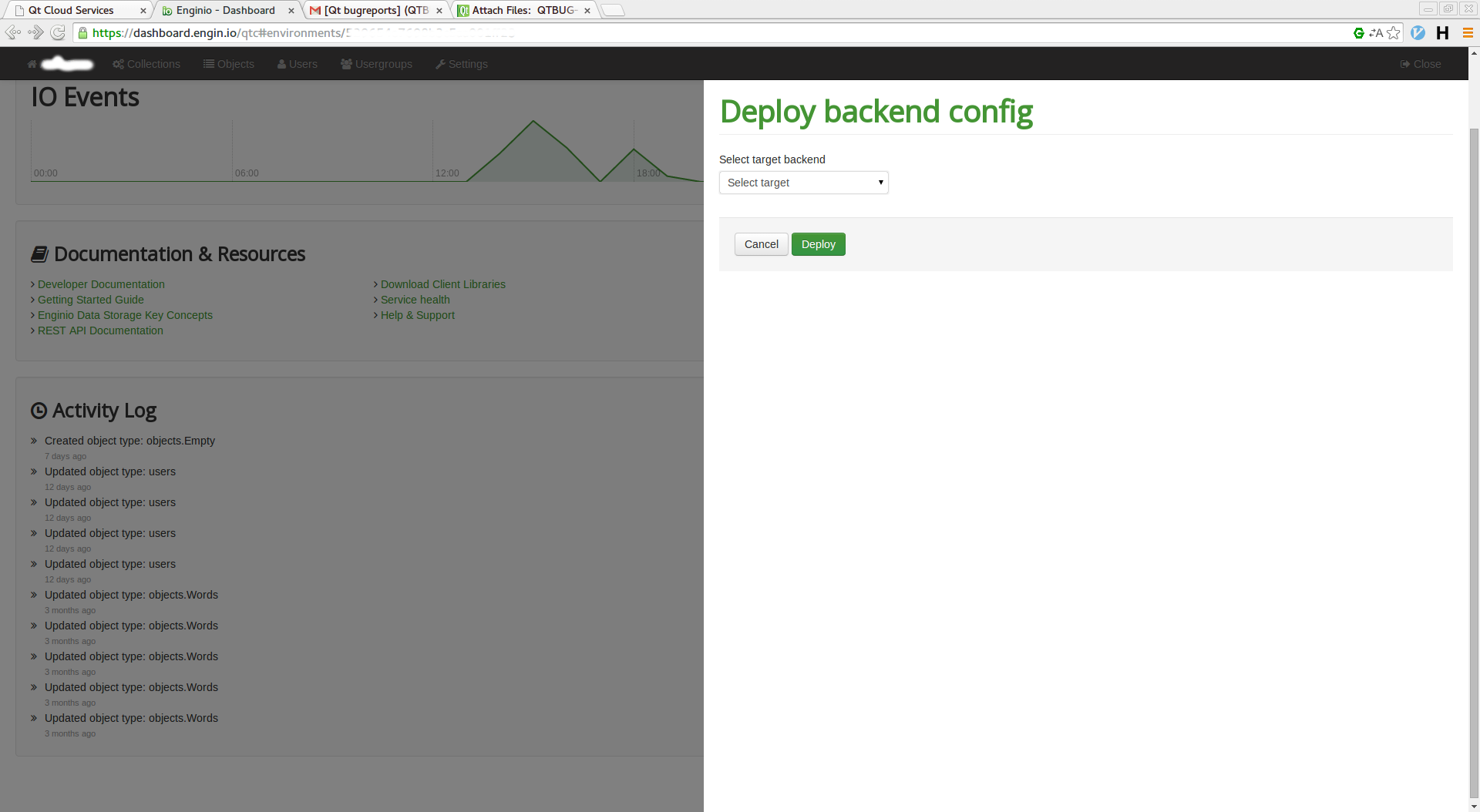 Deploy button is disabled in Enginio Dashboard