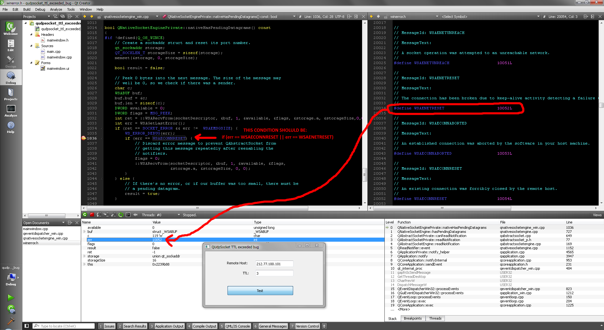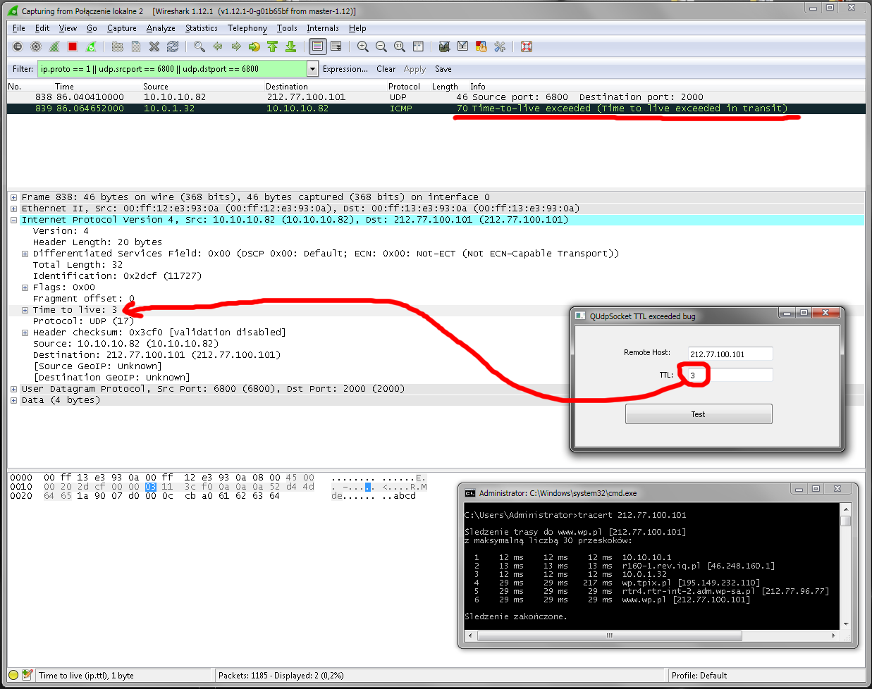 5. Build & run 'qudpsocket_ttl_exceeded_bug' app.