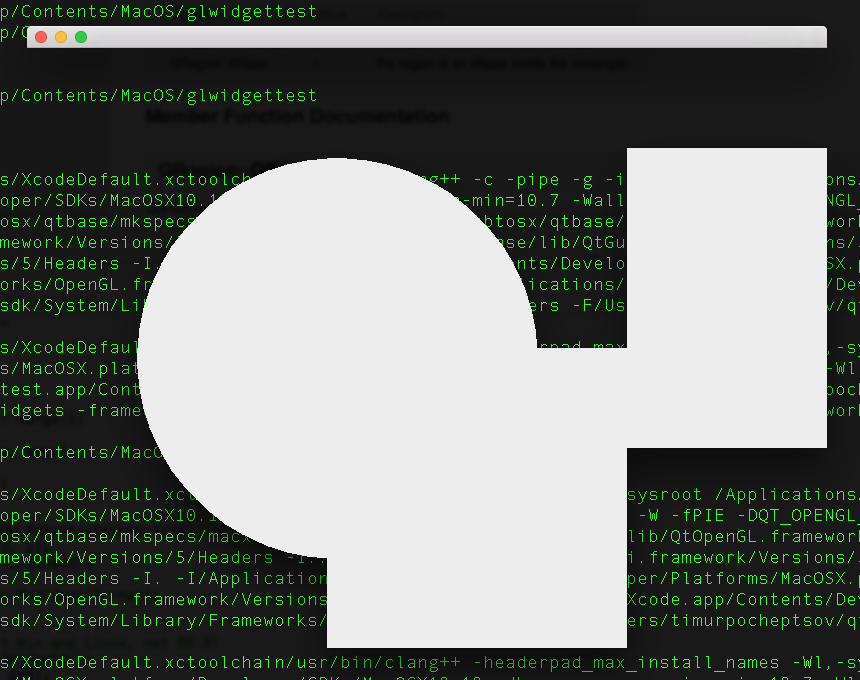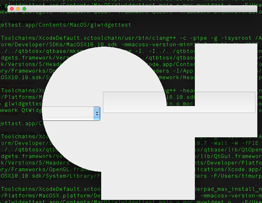 When I set QGLWidget at QMainWindow and than apply setMask to this window it applies only to the window, not widget. It appears at OS X only, works fine at Windows and Ubuntu.