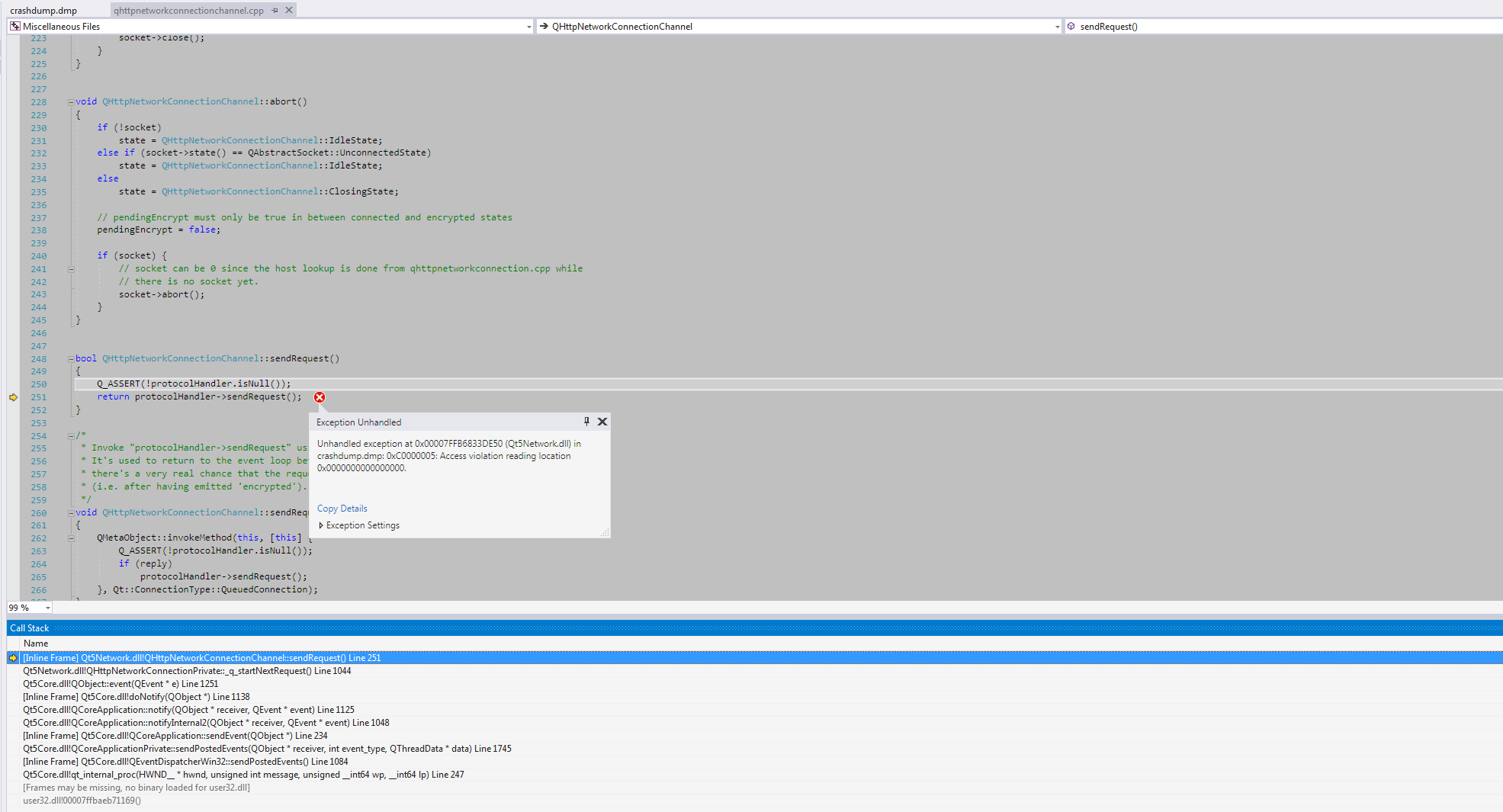 ASSERT: "!protocolHandler.isNull()" in file access\qhttpnetworkconnectionchannel.cpp, line 206