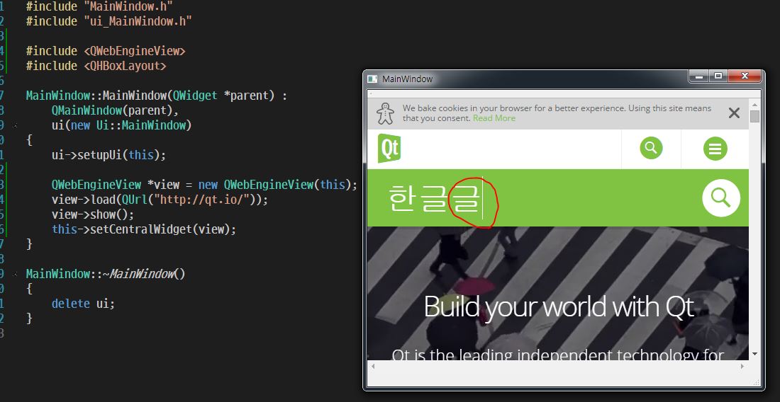 On the other hand, quicknanobrowser example using qml could type korean with some bug