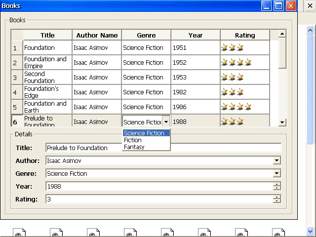 We run the sample program "books" in WINCE7.0 platform. Any of the list item column "Genre" can be open up when use mouse operate.