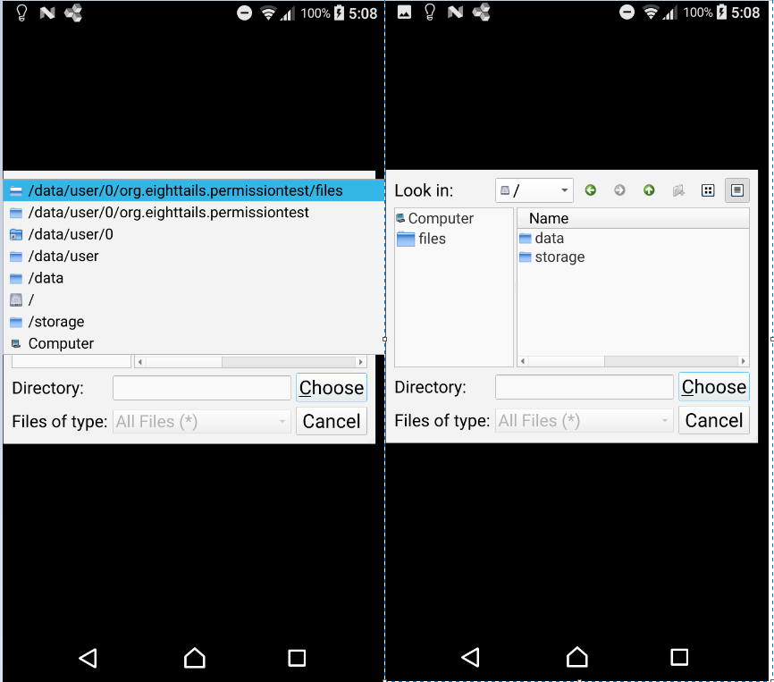 Android:QFiledialog doesn't show folders until path is explicitly specified.