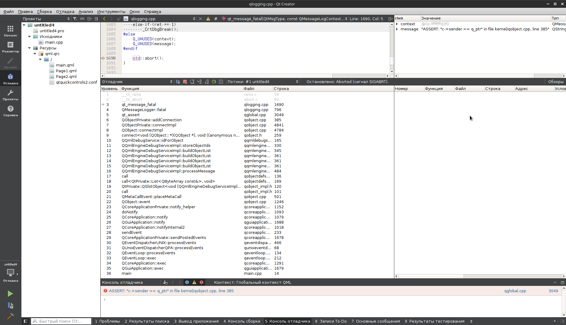 I'm loading page content using Loader and TabBar's "currentIndexChanged" signal.  On that pages there is buttons, that opens modal popups. If i open such popup on one tab and then switch to another tab, the program crashes. Bug reproduces only under debugger, and seems very simillar to QTBUG-59532