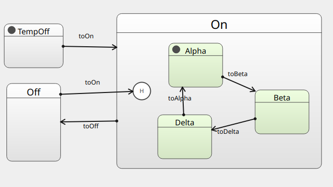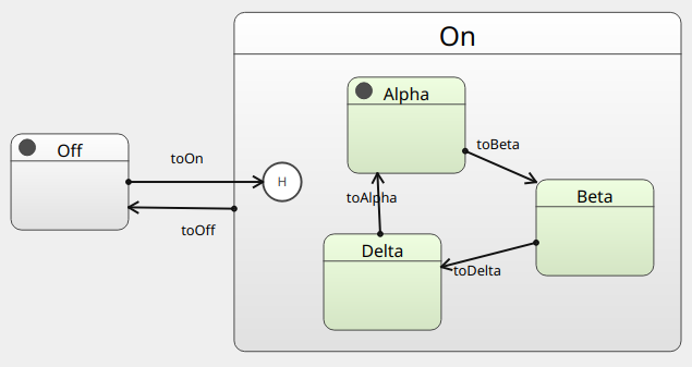 We were expecting calling 'toOn' to automatically go to the initial state 'Alpha' even when the history hasn't ever been set before. Instead, it crashed.