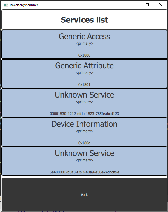 I attached my project in a zip file. The service UUID is hardcoded and it is the [UARTservice|https://learn.adafruit.com/introducing-adafruit-ble-bluetooth-low-energy-friend/uart-service] it just has to be changed if you want to test your BLE device.