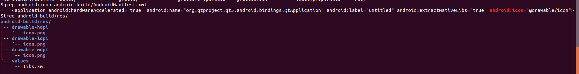 Maybe it's caused androiddeployqt / main.cpp because there is no code passage with "android:icon" to be found.