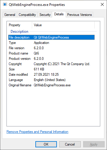 Since Qt 5.15.2 QtWebEngineProcess has inappropriate file description.