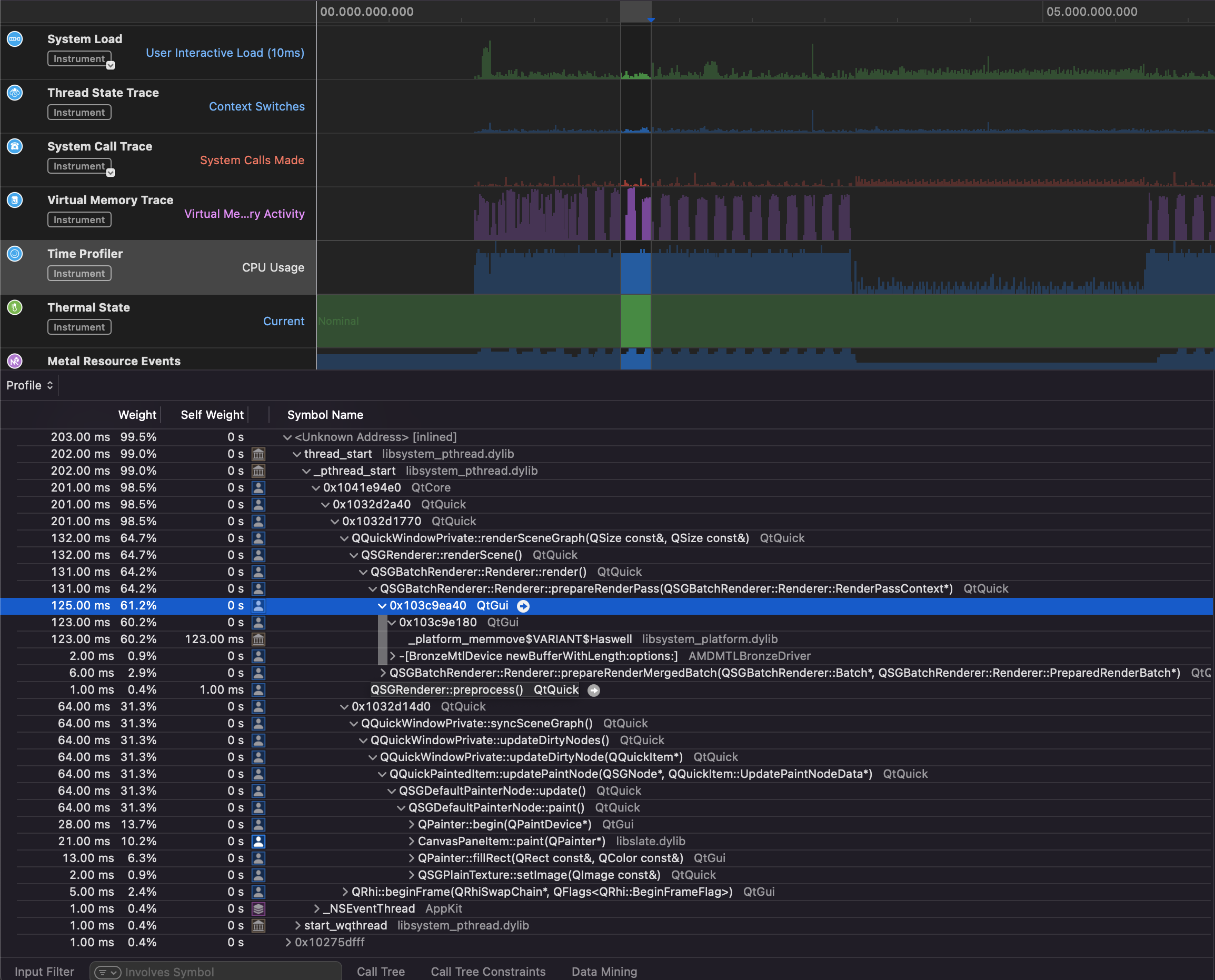Run the attached example with e.g. 5.15 and 6.2/dev, and you'll see the FPS roughly halved with 6.2/dev compared to 5.15.