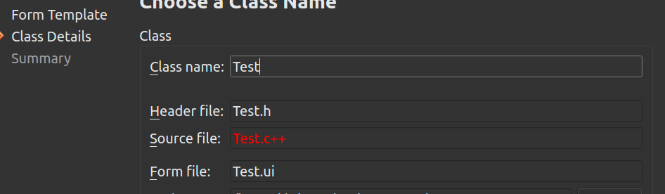 Qt designer form class wizard doesnt allow c++ extension in filename