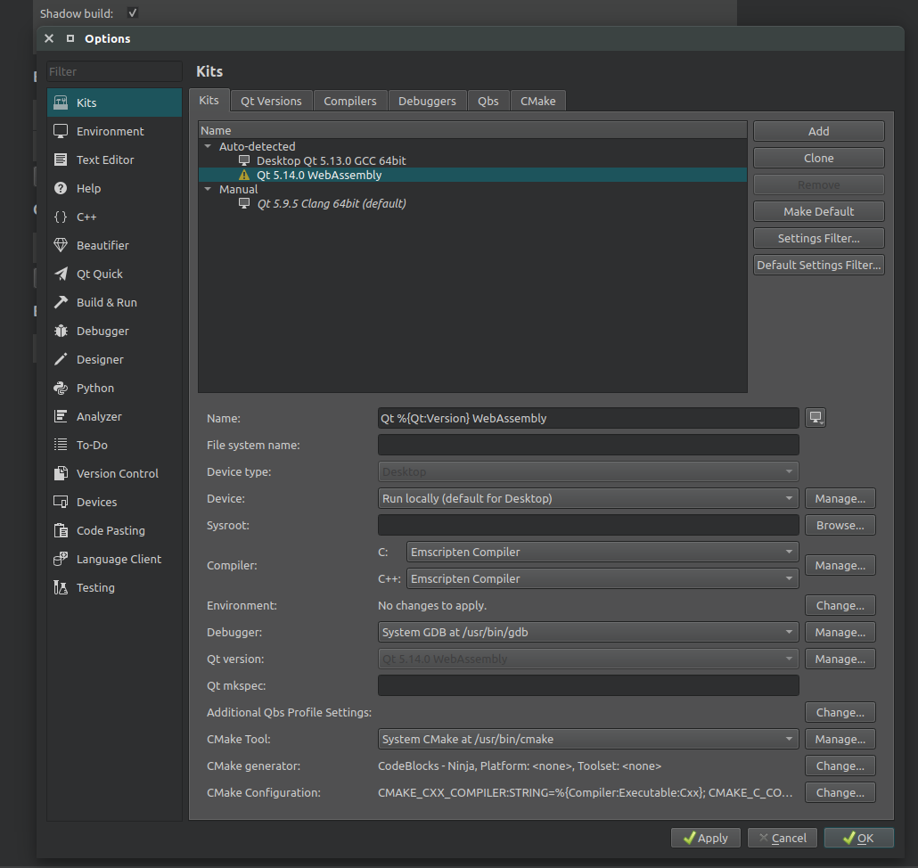 Qt Creator Webassembly plugin prints full program in text