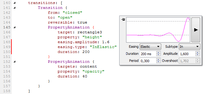 Behavior: if user clicks in an Animation, then show the Easing Curve editor, preview is triggered each time you switch easing parameters