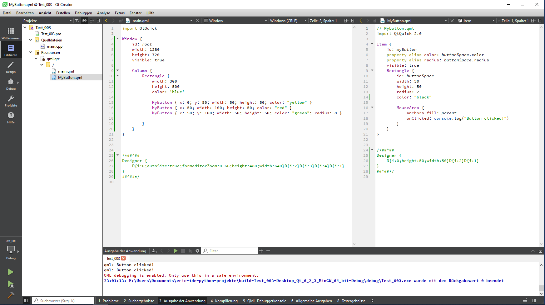 lege ich exakt die selben main.qml und MyButton.qml für ein Projekt unter Qt 6.2 zugrunde, dann tritt der Fehler auf. "MyButton is not a type" — Das kann es doch nicht sein - oder?