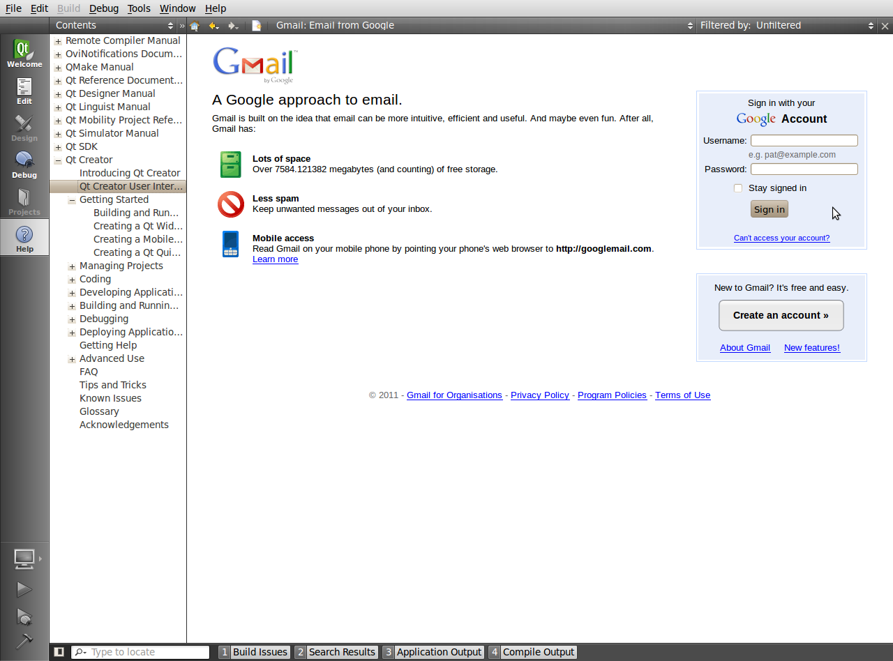Qt Creator crashed when I use the "Help Documentation" browser to login Gmail