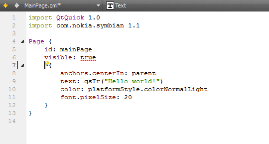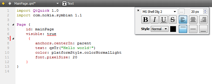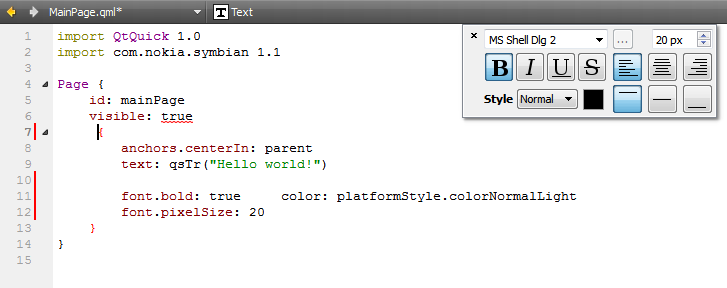 Additionally you can still click the lightbulb to bring up the QtQuick ToolBar. If you change some settings with the ToolBar now the first change is accepted and misplaced within the code. Further changes are completely ignored.