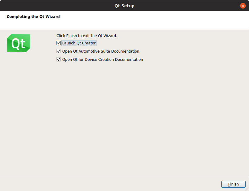 Attached is the screenshot of the Qt Installer when you complete an installation. I selected an Automotive Software Stack and I get: