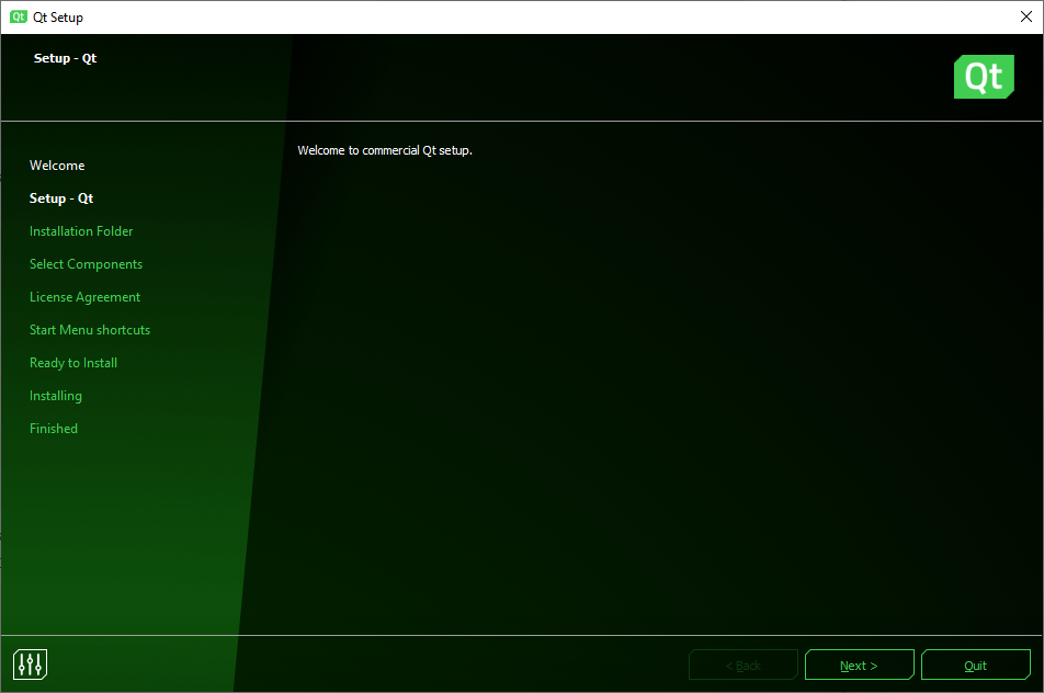 - once the user has authenticated her/himself in the Qt Maintenance tool, he sees the "Welcome to the Qt Installation!" message and the loading of the metadata starts immediately (see attached image)